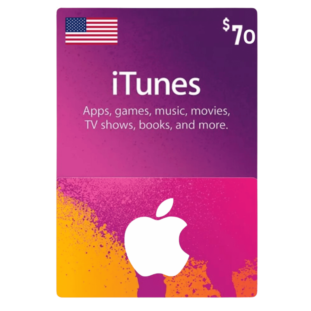 Get your Apple iTunes Gift Card 70 USD (USA Store) at the best price in Egypt! Use it for apps, games, music, movies, and subscriptions on the App Store, iTunes, and Apple Books. Instant delivery & secure transactions. Buy now at EogStore!